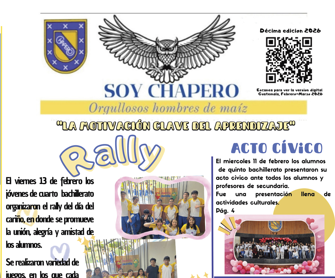 Con gran gusto presentamos la décima edición del periódico estudiantil «Soy Chapero», preparado por los estudiantes de 5to. Bachillerato y coordinado por Miss Tere. Felicidades por darle continuidad a este proyecto. 🗞️